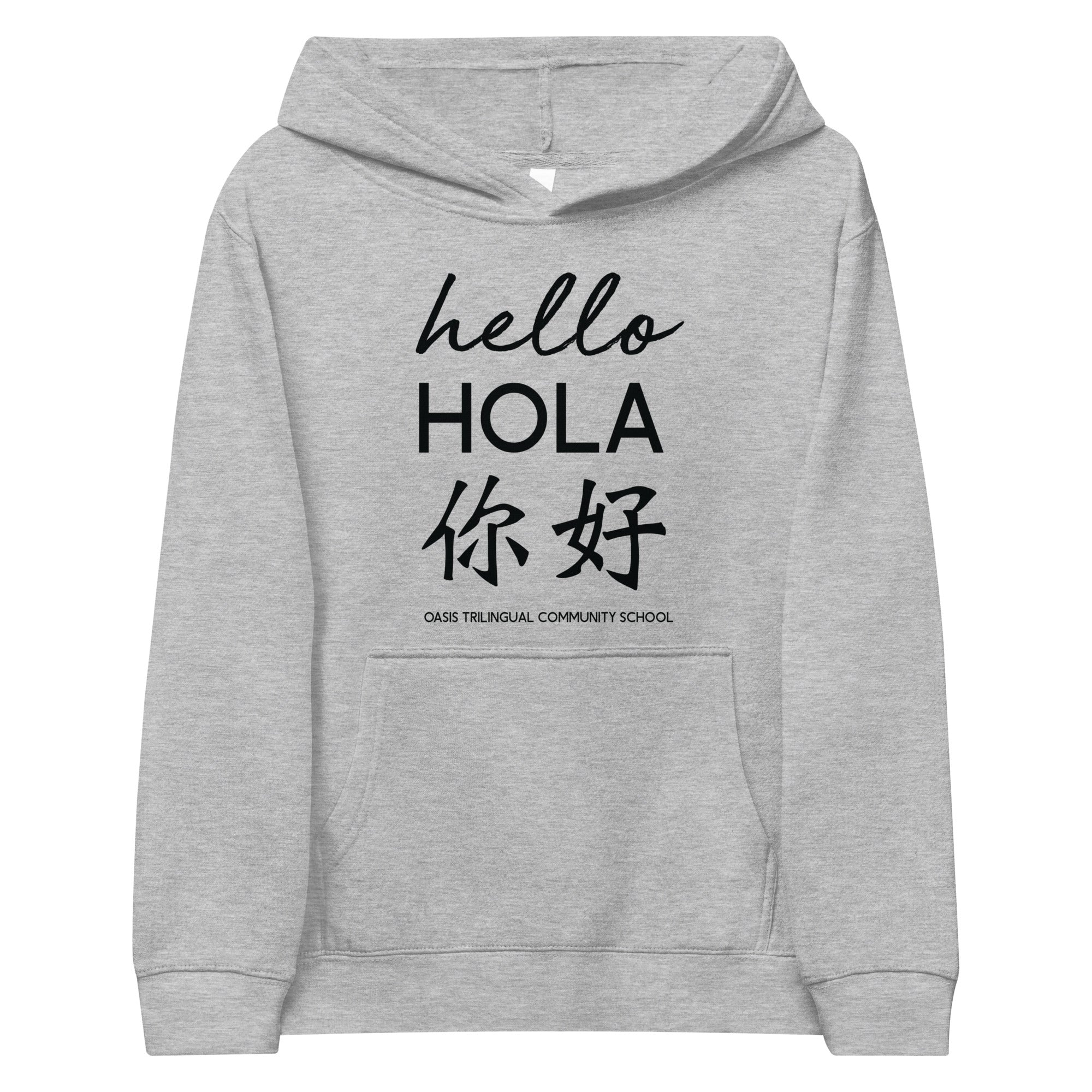 Oasis 'Hello' Trilingual Youth Hoodie - Heather Grey